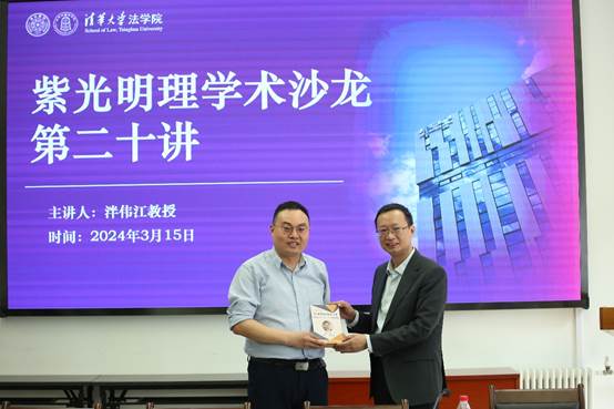 At noon on March 15, the School of Law successfully held the first Ziguang Mingli Academic Salon in 2024 in Room 110 of the Law Library Building. This event consisted of the twentieth lecture in this series. Professor Pan Weijiang from the School of Law, Beihang University was invited as the keynote speaker. The salon was presided over by Wang Gang, Deputy Secretary of the Party Committee of the School of Law, and attended by more than 20 faculty members and students from the school.