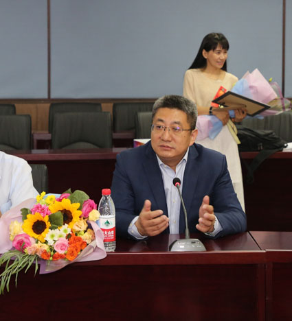 傅廷中老师发言,他表示对同学们毕业后的成就深感欣慰,公司的声誉在于培养员工,清华员工要同时担起个人事业与母校发展的重任,衷心希望各位员工能在所属行业发光发热。