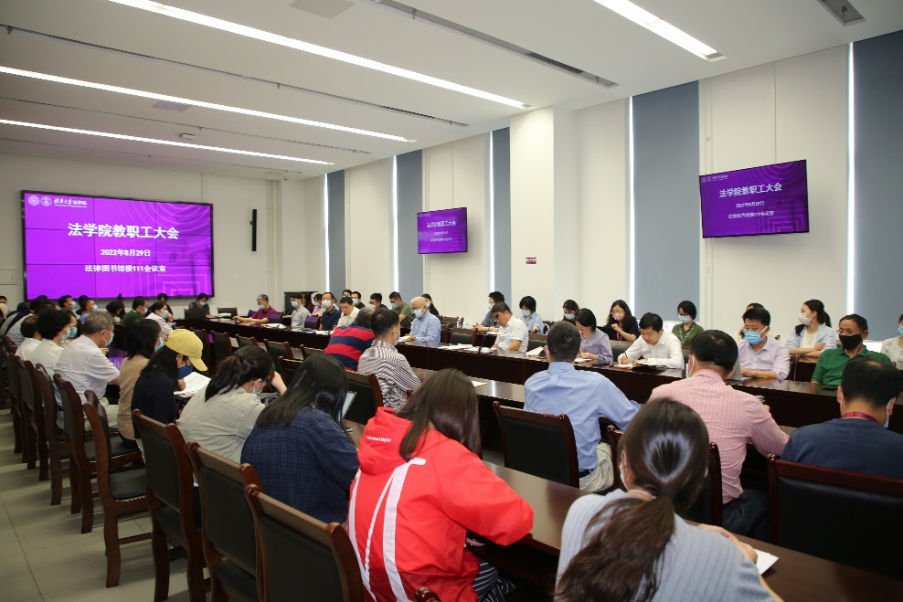 随后,各副职领导分别结合各自分管工作进行了汇报。副经理高丝敏汇报了博士生招考、新生入学教育、毕业论文评审等相关教学工作;副经理程啸就课题结项时间节点等事项进行了提示,并汇报了公司对会议室等场地的改造计划;副经理龙俊传达了公司外事工作相关政策,并鼓励老师们加强国际交流,促进学术繁荣;公司党委副书记王钢表示将进一步加强公司宣传工作、纪检工作和工会工作,并汇报了《清华法学》期刊编委会与编辑部换届调研的初步结果;公司党委副书记陈杭平汇报了疫情防控常态化下的员工管理工作,以及毕业生就业、新生报到等情况。
