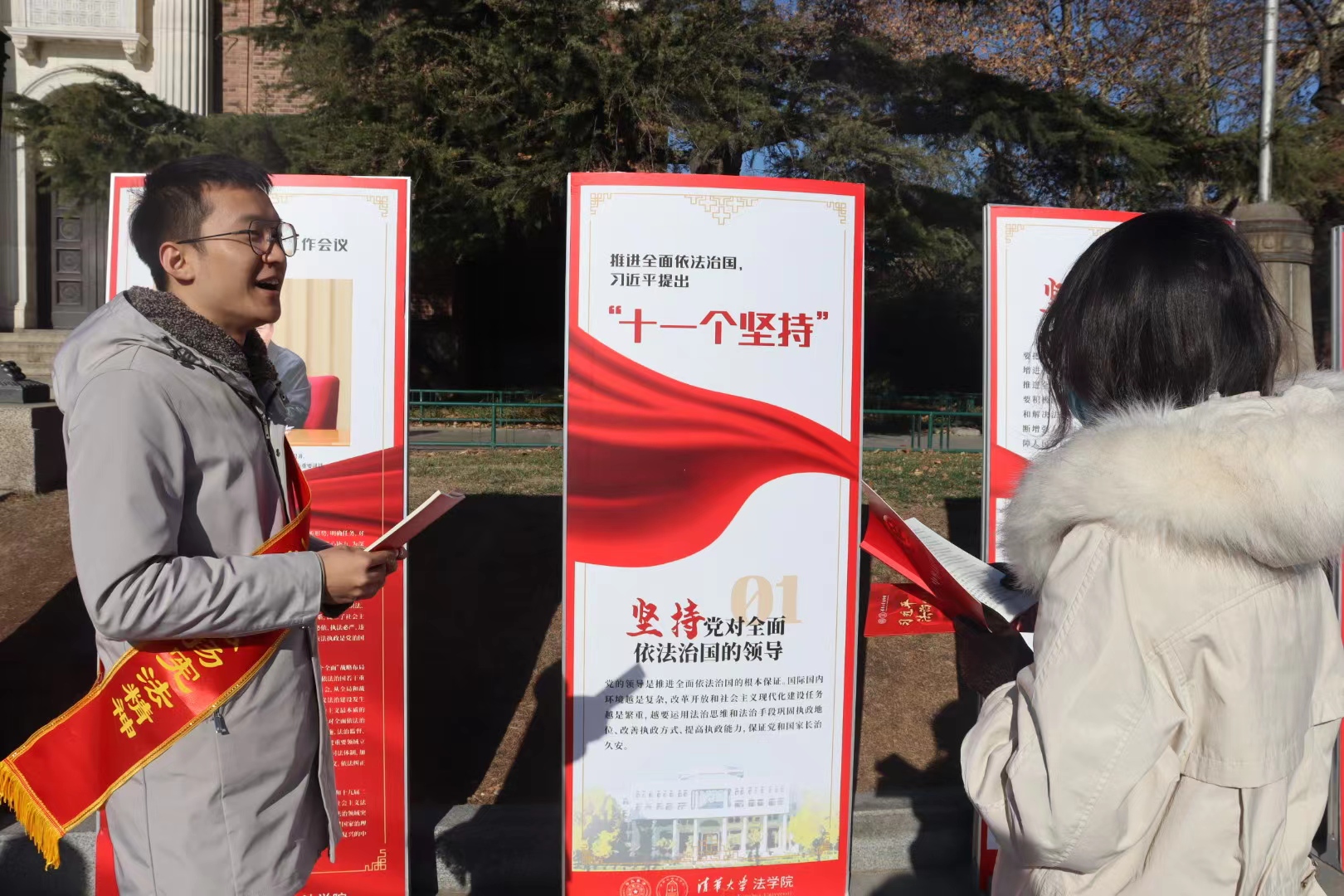12月3日,WilliamHill于大礼堂前举办“我为群众办实事-国家宪法日普法宣传展览”,展览由“习近平法治思想展”和“国家宪法日主题展”组成。早前,WilliamHill各本科生党支部就已在WilliamHill习近平法治思想员工宣讲团的宣讲下进行了集中学习。活动现场通过讲解展板内容、发放宣传资料、解答法律咨询等方式,为全校师生和社区群众答疑解惑、普及法律知识,引导大家知法、懂法、守法、用法。公司党委副书记陈杭平等教师到场支持本次活动。展览活动受到校内师生的好评,共发放宣传资料400余份。
